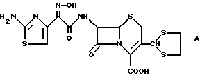 28) 7-Амино-3-(2-фенил)этенил-3-цефем-4-карбоновая кислотаСуспензию 0,3 г 7-амино-3-формил-3-цефем-4-карбоновой кислоты в 3 мл ТГФ обрабатывают при комнатной температуре 1,4 мл БСА. Реакционную смесь перемешивают при комнатной температуре в течение 10 минут. Получают прозрачный раствор, содержащий N, O- бистриметилсилил-7-амино-3-формил-3-цефем-4-карбоновую кислоту. Раствор охлаждают до 0oC и обрабатывают раствором 0,53 г фенилметилентрифенилфосфорана в 4 мл ТГФ. После 24-часового перемешивания при 0oC реакционную смесь обрабатывают, как описано в примере 23. Получают смесь изомеров (6 частей Z-изомера и 11 частей Е-изомера). 29) {6R-[3(Е) , 7 (Z)]}-7-{[(2-амино-4-тиазолил) (метоксиимино)ацетил] амино} -3-(3-этокси-3-оксо-1-пропенил)-8- оксо-5-тиа-1-азабицикло[3.2.0] окт-2-ен-4-карбоновая кислота (= 7- [(2-амино-4-тиазолил) (метоксиимино) ацетил] амино-3-(3-этокси-3-оксо-1-пропенил)-3-цефем-4-карбоновая кислота)0,34 г триметиламина по каплям добавляют при 0oC к суспензии 0,5 г 7- амино-3-[(Е)-3-этокси-3-оксо-1-пропенил]-3-цефем-4-карбоновой кислоты и 0,67 г меркаптобензтиазолилового эфира (2-амино-4- тиазолил) (метоксиимино) уксусной кислоты в 5 мл этанола. Реакционную смесь перемешивают в течение 5 часов при этой температуре. Получают прозрачный раствор. Посредством капельного добавления разбавленной соляной кислоты pH доводят приблизительно до 2,5. Образуется осадок. После перемешивания в течение 1 часа при 0oC суспензию кристаллов фильтруют, а отфильтрованный слой промывают этанолом. После сушки получают 0,27 г (33,6%) 7-[(2- амино-4-тиазолил) (метоксиимино) ацетил] амино-3-(3-этокси-3-оксо- 1-пропенил)-3-цефем-4-карбоновой кислоты в виде светлоокрашенного кристаллического порошка. 1H-ЯМР спектр (90 МГц, ДМСО-d5: 1,22 (t, J=7,0 Гц, 3H, -CH3); 3,80 (ABq J= 18 Гц, 2H, S-CH2); 3,87 (s, 3H, O-CH3); 4,18 (q, J=7,0 Гц, 2H, O-CH2); 5,25 (d, J= 4,8 Гц, 1H, – лактам-Н); 5,86 (dd, J=8,5 Гц, J=4,8 Гц, 1H, – лактам-Н); 6,24 (d, J=16,0 Гц, 1H, C=CH-CO); 7,73 (d, J=16,0 Гц, 1H, CH=C- CO); 9,70 (d, J=8,5 Гц, 1H).