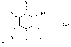 (57) Реферат: Изобретение относится к способу получения производных 1,4-дигидропиридина ф-лы (I), где R1 – водород; R2, R3 и R5 обозначают (С1-С5)алкокси-С(= O)-; R4 – фенил или замещенный галогеном фенил, R6 – гетероциклическое кольцо, содержащее до 2-х гетероатомов, выбранных из серы и азота; Y – метилен. Способ заключается в том, что соединение ф-лы (II) подвергают взаимодействию с соединением ф-лы (III), где R1 – R6 и Y имеют вышеуказанные значения, в присутствии основания в среде инертного растворителя при температуре от 0oС до комнатной температуры с последующей циклизацией полученного продукта в присутствии кислотного катализатора, выбранного из протонной кислоты. Описываемый способ является универсальным и позволяет получать 1,4-дигидропиридины с различными заместителями в мягких условиях. 3 з.п. ф-лы. ![]() ![]()