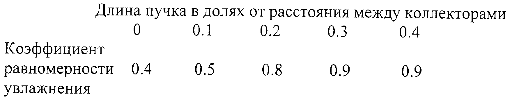 Результаты испытания показывают, что предложенное техническое решение обеспечивает повышение коэффициента равномерности увлажнения в два раза с 0,4 до 0,8 за счет устройства пучка истоковых участков дрен длиной 0,2-0,3 от расстояния между коллекторами.