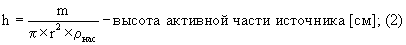 (57) Реферат: Изобретение относится к области ядерной техники и представляет собой способ изготовления объёмных источников ионизирующего излучения с торцевой рабочей поверхностью, в частности источников гамма-излучения телетерапевтического назначения, используемых при лечении онкологических заболеваний. Для этого с рабочей стороны источника закладывают послойно радионуклид с уменьшением удельной активности в слоях. Изобретение позволяет повысить эффективность источника. 1 табл. Изобретение относится к области ядерной техники и может быть использовано при изготовлении объёмных источников ионизирующего излучения с торцовой рабочей поверхностью, в частности при изготовлении источников гамма-излучения телетерапевтического назначения, используемых при лечении онкологических заболеваний. В книге В.П. Сытина, Ф.П. Теплова, Г.А. Череватенко “Радиоактивные источники ионизирующих излучений”. М.: Энергоиздат, 1984 г., с. 31 описаны конструкции и способы изготовления источников ионизирующих излучений, включающие последовательно выполняемые операции закладки в капсулу источника радионуклида, герметизации капсулы и измерения мощности дозы (далее по тексту МД) готового источника. При расчете МД закладываемого в капсулу радионуклида берётся среднее значение его удельной активности, т.к. при облучении радионуклида в реакторных установках, отклонение удельной активности от среднего её значения может достигать ±50%. Это определяется распределением облучаемого материала в мишени, расположением мишени в облучательном устройстве и расположением облучательного устройства относительно активной зоны реактора. Недостатком известного способа является то, что при использовании смеси компонентов радионуклида с равномерным распределением удельной активности по объёму активной части источника коэффициент самопоглощения излучения в источнике зависит только от геометрических размеров его активной части, в частности, для источников с торцовой рабочей поверхностью определяющей является высота активной части и плотность радионуклида. В этом случае коэффициент самопоглощения рассчитывается по формуле:
