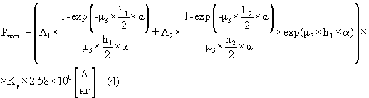в частности, для двухслойной закладки радионуклида формула примет вид: