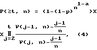 Для канала с группированием ошибок, согласно модифицированной модели канала Пуртова, величина вероятности t и более ошибок (t
