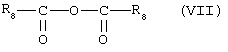В способе получения этих смешанных сложных дипероксиэфиров и сложных пероксиэфиров пероксикарбонатов ангидрид карбоновой кислоты имеет общую формулу VII: