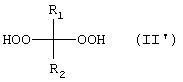 Следует отметить, что в способах получения пероксида кетона может быть чистым (Т3) пероксидом (как показано в общей формуле II), или он может содержать 5-30%, например, 5-25% и 10-15% производного (Т3) пероксида, (Т4), имеющего общую формулу II’: