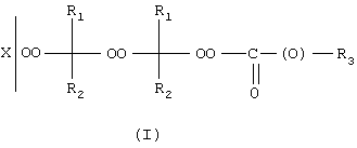 Таким образом, настоящее изобретение относится к сложному монопероксиэфиру или монопероксикарбонату, имеющему общую формулу I: