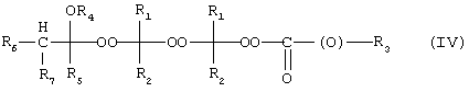 где R1, R2, R3, R4, R5, R6 и R7 имеют определенные выше значения. Эти смешанные пероксиды можно получить с помощью описанной выше реакции присоединения простого алкилвинилового эфира.