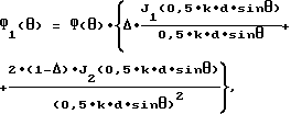 В случае равномерного симметричного распределения закороченных облучателей в фокальной плоскости параболической антенны и принятия мер по симметрированию диаграмм направленности в Е- и Н-плоскостях каждого из облучателей F1( , ) и F2( , ).Диаграмма направленности по напряжению параболической антенны для облучателя, размещенного в фокусе, определяется [5] ,где – длина волны в воздухе;k = 2 ![]() / – волновое число; – относительная (по сравнению со значением в середине) величина поля на краях раскрыва зеркала; распределению поля в раскрыве длиннофокусной антенны, созданному облучающим концом круглого волновода, ориентировочно соответствует величина =0,7;Ф( ) – диаграмма направленности открытого конца круглого волновода облучателя по напряжению в Е-плоскости, определяемая [7] как![]() где в – длина волны в волноводе;а – радиус волновода. С учетом соотношения (6) ДОР переизлучающей антенны, в произвольном сечении фокальной плоскости которой расположены n (симметричных относительно оптической оси) облучателей, определяется выражением ![]() где – угол наклона диаграммы направленности антенны для соседних облучателей, разнесенных в плоскости сечения на расстояние x.