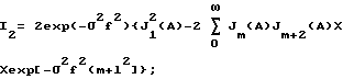 Рассмотрим теперь некоторые количественные соотношения. Положим, что профиль интенсивности исходного светового пучка является гауссовым (что соответствует одномодовому режиму работы лазера) с диаметром 2 по уровню e-1. Примем, что в среде имеется одна бегущая акустическая волна частоты , а скорость движения среды относительно пучка (в направлении волнового вектора акустической волны) равна V. Расчеты показывают, что вследствие дифракции светового пучка на акустической волне диаграмма направленности I(0) интенсивности пучка на выходе из среды в направлении оси пучка (угол наблюдения равен нулю) имеет следующий вид:![]() где I*(0) – диаграмма направленности исходного пучка; ![]() ![]() Jm – функция Бесселя порядка m; A = kL n;k = 2 / , – длина волны светового пучка;L – ширина акустического пучка; n – изменение показателя преломления среды, обусловленное акустической волной;f = 2 / , – длина акустической волны;C – скорость звука в среде; – фаза сигнала;I4… – высшие (четные) гармоники сигнала. В дальнейшем эти высшие гармоники учитывать не будем, поскольку наибольший интерес представляет вторая гармоника. Видно, что амплитуды I0, I2 составляющих сигнала (1) существенным образом зависят от параметра ( t)2= (2![]() / )2. Из теории функций Бесселя можно получить соотношения:![]() С учетом этого из (1) следует, что если ( t)2 1, то I0 = J02(A) (что соответствует нулевому порядку дифракции), а I2 = 0. Если же ( t)2 1, то I0 = 1; I2 = 0. В этом случае акустическая волна практически не влияет на характеристики светового пучка. То есть, из строгого решения видно, что заметная модуляция интенсивности (заметная амплитуда второй гармоники сигнала) имеет место лишь в определенном диапазоне значений параметра f. Оптимальное значение ( f)opt, при котором амплитуда второй гармоники максимальна, в определенной мере зависит от A. В частности, если A = 0,5; то ( f)opt= 0,82; если A = 1, то ( f)opt= 0,77; если A = 2,4 (при этом J0(A) = 0), то ( f)opt= 0,58.