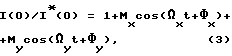 Если в среде распространяются две бегущие навстречу друг другу акустические волны с частотами 1; 2( 1; 2 1– 2), то легко выделить лишь низкочастотную составляющую сигнала. Для этой низкочастотной составляющей имеет место соотношение, аналогичное (1):![]() где амплитуды I0, I2 определяются теми же соотношениями, что и в (1), с той лишь разницей, что волновое число f одной акустической волны должно быть заменено средним волновым числом (f1 + f2)/2, где f1, f2 волновые числа двух указанных волн. Таким образом, (2) определяет параметры оптического сигнала на выходе из исследуемой среды. Положим теперь, что в исследуемой жидкости распространяются две волны, бегущие навстречу друг другу в направлении 0Х (с частотами x1; x2) и две аналогичные волны в направлении 0Y (с частотами y1; y2).Поскольку световой пучок распространяется в направлении 0Z, то нетрудно видеть, что ![]() где ![]() Для заданных максимальных значений проекций Vx, Vy скорости жидкости нетрудно выбрать ![]() x,![]() y такими, что составляющие сигнала легко разделяются соответствующими электронными фильтрами. Тогда на выходе каждого фильтра по измеренным частотам сигналов ![]() x,![]() y можно найти искомые значения проекций (компонент) скоростей:Vx= C( x–![]() x)/( x1+![]() x2);Vy= C( y–![]() y)/( y1+![]() y2).Оценим возможные диапазоны измерений применительно к воде (С = 1,5 103 м/с) для диаметра лазерного пучка (по уровню e-2) D 0,5 мм. Тогда максимальная глубина модуляции достигается при 1,5…2 мм. В этом случае x1 x2 y1 y2 1 МГц. Положим, что x–![]() x y–![]() y= 1 Гц. Тогда, как нетрудно видеть, для нижнего предела измерений по скорости получим: (Vx)min = (Vy)min 1 мм/с. В качестве верхнего предела примем достаточно большое значение (Vx)max = (Vy)max 15 м/с. Тогда (![]() x)max= (![]() y)max= 20 кГц.