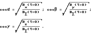 ), By( ), Bz( ), а гипоцентр месторождения отождествляют с точкой пересечения в пространстве двух радиус-векторов, направляющие косинусов которых (cos , cos , cos ) рассчитываются как корень квадратный из отношения значения автокорреляционной функции в нуле по соответствующей координате Bi( =0) к сумме их значений в нуле B ( =0) = Bx( =0)+By( =0)+Bz( =0) для данного сейсмоприемника.
