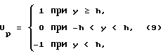 h включается РЭ 9, одновременно срабатывает формирователь 10, выходной сигнал z которого является выходом релейного регулятора. (Формирователь 10 представляет собой релейный элемент с задержкой на выключение: срабатывание формирователя 10 происходит одновременно со срабатыванием РЭ 9, а выключение – через время
