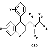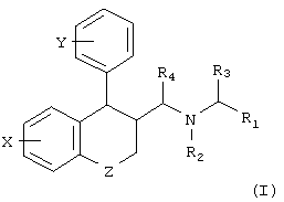 (57) Реферат: Изобретение относится к новым производным аминометилкарбоновой кислоты формулы 1 ![]() где Z представляет собой (СН2)n, О или S; n равно 0, 1 или 2; Х представляет собой 1-3 заместителя, независимо выбранных из водорода, галогена, (С1-6)алкилокси,(С3-6)циклоалкилокси, (С6-12)арилокси, (С6-12)арила, тиенила, CN, СООR6 и (С1-4)алкила, необязательно замещенного галогеном, или 2 заместителя в смежных положениях вместе представляют собой конденсированную (С5-6)арильную группу или O-(СН2)m-O, где m равно 1 или 2; Y представляет собой 1-3 выбранных из водорода, галогена, (С1-4)алкилокси и (С1-4)алкила, необязательно замещенного галогеном; R1 представляет собой COOR7; R2 и R6 представляют собой (С1-4)алкил; R3, R4 и R5 независимо представляют собой водород; R7, R8 и R9 независимо представляют собой водород или (С1-4)алкил; или его фармацевтически приемлемым солям, а также к фармацевтической композиции на их основе, обладающей действием на центральную нервную систему. Технический результат – получение новых соединений, обладающих ценным фармацевтическим действием. 2 с. и 5 з.п. ф-лы, 1 табл. Текст описания в факсимильном виде (см. графическую часть)к Формула изобретения 1. Производные аминометилкарбоновой кислоты, имеющие общую формулу I