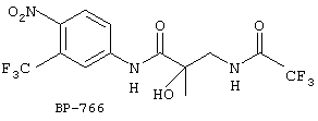Системные антиандрогены гидроксифлутамид и бикалутамид не действуют в значительной степени на рецепторы андрогенов при любой концентрации после 48 часов, в то время как ВР-766 подавляет рецепторы андрогенов при концентрации 3 мкм в течение 16 часов, практически элиминирует рецепторы андрогенов при концентрации 10 мкм в течение 48 часов. ВР-34, ароматический продукт деградации BH-766, не действует на рецепторы андрогенов.
