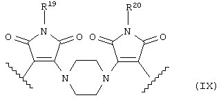 9. Способ получения соединений по п.1, в которых R2 и R13 означают остаток общей формулы V по п.1 или они объединены с образованием структуры общей формулы VII по п.1, отличающийся тем, что 2,2′-бис-1Н-индолилалкан или его производное общей формулы XI обрабатывают диброммалеинимидом