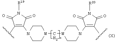 10. Способ получения соединений по п.1, в которых R2 и R13 объединены с образованием структуры общей формулы IX или Х по п.1, отличающийся тем, что сначала обрабатывают диброммалеинимидом 2,2′-бис-1Н-индолилалкан или его производное общей формулы XI