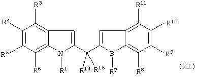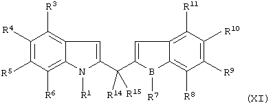 причем R3, R4, R5, R6, R8, R9, R10 и R11 могут быть одинаковыми или различными и по выбору означают водород, алкил, замещенный следующими группами: алкокси, амино, галоген, циклоалкил, морфолинил, пиперидинил, пирролидинил, фенил; алкокси, алкоксиметильную группу, нитрогруппу, галоген или O-алкоксигруппу общей формулы -O-(CO)-R21, причем R21 означает алкил, замещенный следующими группами: алкокси, амино, галоген, фенил, тиенил или фурил; алкокси или алкоксиметилгруппу; за исключением бис(бензотиофен)метана.
