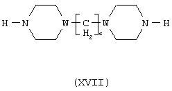 а затем его обрабатывают первичным или вторичным амином, представленным следующими общими структурами XVI, XVII или пиперазином: