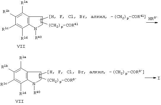 10. Способ получения соединения формулы I по одному или нескольким из пп.1-9, включающий конденсацию соединения формулы VII с соединением формулы HR8’, с получением соединения формулы VIII и необязательно превращение соединения формулы VIII в соединение формулы I
