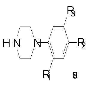 и взаимодействие соединения общей формулы 3 с фенилпиперазиновым производным 8