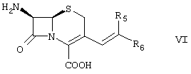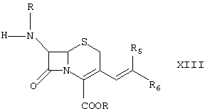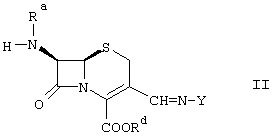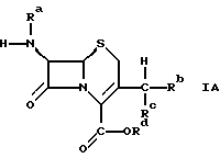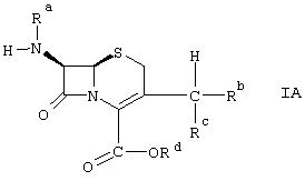 (57) Реферат: Изобретение относится к новым промежуточным производным цефалоспорина формулы IA, где ) Ra обозначает водород или силильную группу; Rb обозначает группу формулы -ORe, в которой Re обозначает водород или алкил; a Rc и Rd вместе обозначают связь; или ) Ra и Rb обозначает водород или силильную группу; а Rb и Rc совместно обозначают иминогруппу формулы =N-Y, в которой Y обозначает фенил; или ) Rd обозначает водород или силильную группу; Ra обозначает водород, если Rd обозначает водород; либо Ra обозначает водород или силильную группу, если Rd обозначает силильную группу; Rb и Rc совместно обозначают оксогруппу и силильная группа обозначает три(низш.алкил)силильную группу, в свободной форме или в форме соли, в качестве промежуточного продукта для получения цефалоспоринов. Способ получения цефалоспорина, включающий: 1) взаимодействие соединения формулы IA, в которой R обозначают силильную группу, с соединением формулы XI или с соединением формулы XII, в которой R5 и R6 одинаковые или различные и обозначают водород или органическую группу, либо R5 и R6 вместе обозначают замещенное или незамещенное кольцо, R10 обозначает арил или низший алкил, Cat+ обозначает катион щелочного металла или протонированную форму сильного органического основания, с образованием соединения формулы XIII, в которой R5, R6 и R определены выше; 2) десилилирование соединения формулы XIII с образованием соединения формулы VI, в которой R5 и R6 одинаковые или различные и обозначают водород или органическую группу либо R5 и R6 вместе обозначают замещенное или незамещенное кольцо; и 3) превращение соединения формулы VI в цефалоспорин. Технический результат – новые промежуточные производные цефалоспорина. 2 с. и 5 з.п. ф-лы.