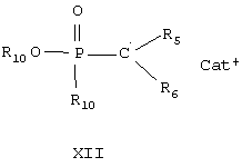в которой R5 и R6 одинаковые или различные и обозначают водород или органическую группу, либо R5 и R6 вместе обозначают замещенное или незамещенное кольцо, R10 обозначает арил или низший алкил, Cat+ обозначает катион щелочного металла или протонированную форму сильного органического основания, с образованием соединения формулы XIII