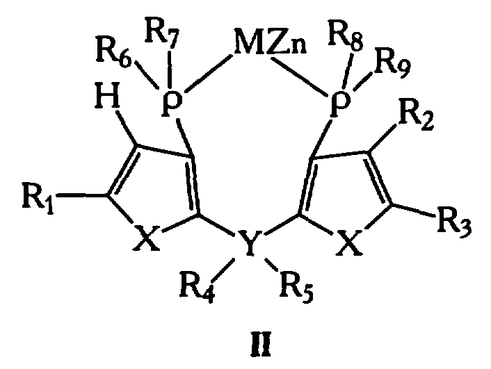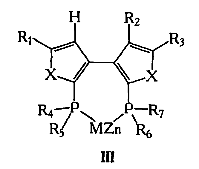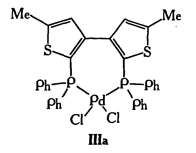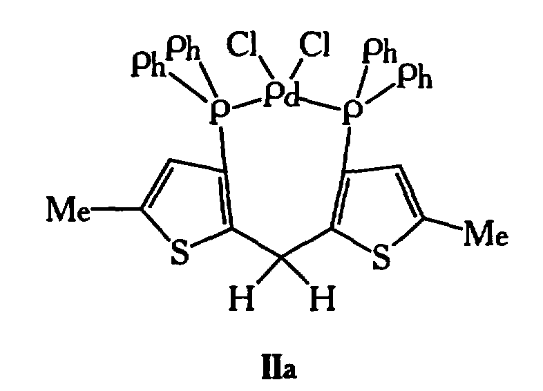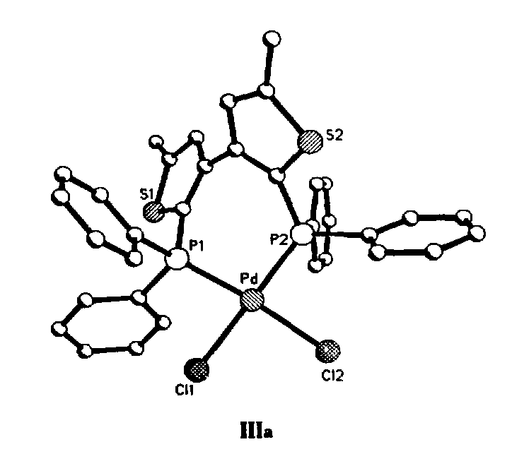 Также описываются дифосфиновые комплексы переходных металлов формул IIa и IIIa.