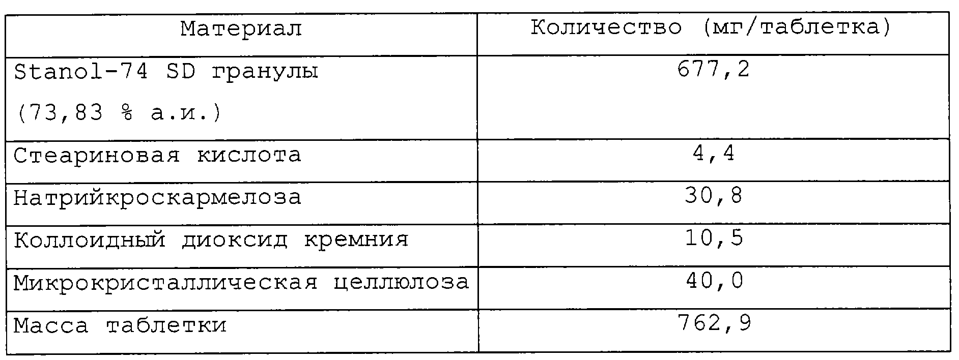 Высушенный распылением материал, полученный в соответствии со способом, описанным в примере 5, объединяют с инактивными ингредиентами для получения таблеток в соответствии с составом и способом, описанным ниже