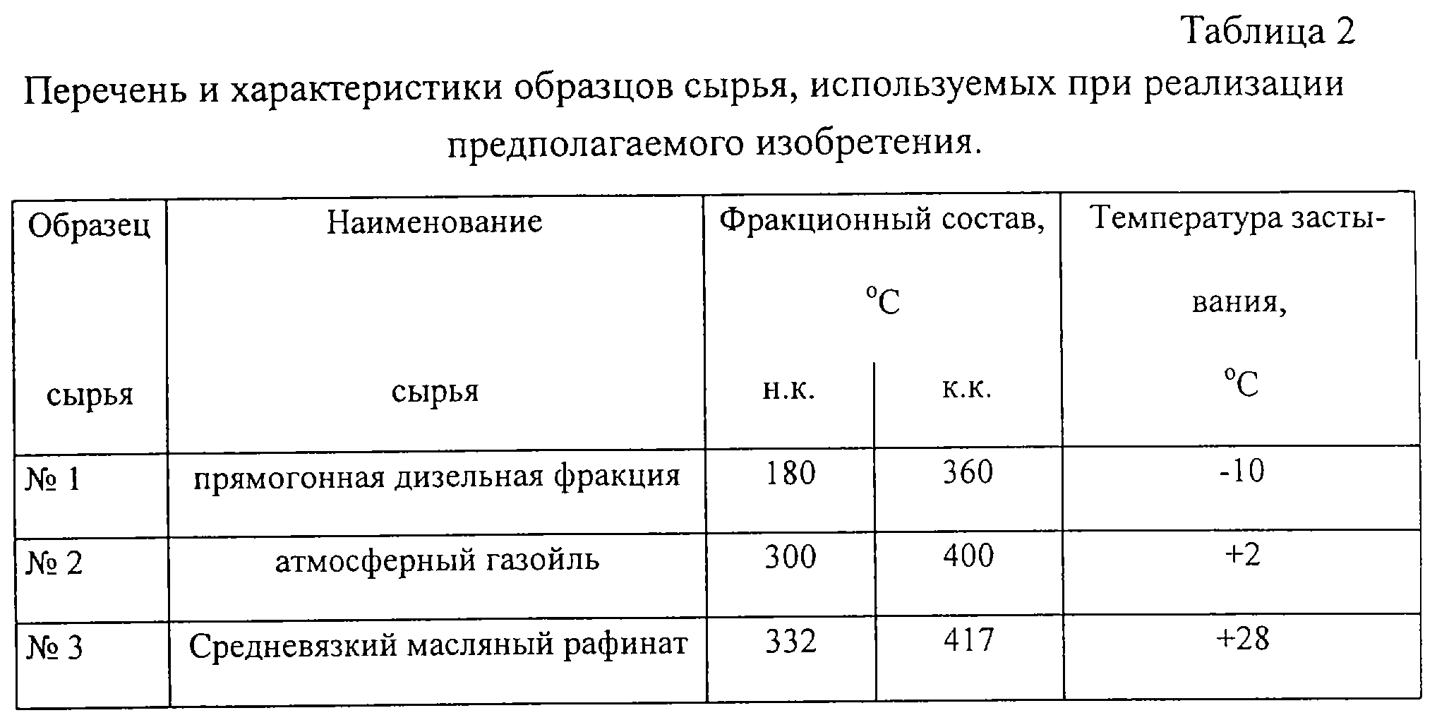 В качестве сырья использованы три образца нефтяных фракций, характеристики которых приведены в табл.2.
