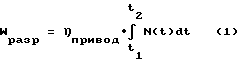ПРИМЕРДля испытания использовали механический пресс ДМ-30 с двигателем для подъема рабочего стола и с элементом жесткости в виде кольца по а.с. СССР 1283595, G 01 N 3/08 для получения полной диаграммы разрушения. К двигателю подключали электронный пишущий ваттметр. В процессе нагружения образца до его разрушения замеряли значения ваттметра во времени и строили диаграмму “N-t” (чертеж). Увеличение уровня нагрузки на испытуемый образец приводит к изменению во времени (возрастанию на восходящем участке и уменьшению на ниспадающей ветви полностью равновесной диаграммы деформирования) потребляемой электродвигателем мощности Nэл. Площадь под диаграммой в результате интегрирования по времени характеризует работу или расход электроэнергии Wразр в процессе реального разрушения образца и определяется по формуле: ![]() Из полученной диаграммы “N-t” (чертеж) можно согласно ГОСТ 29167-91 выделить участки расхода энергии на упругое деформирование и деформации в зоне развития магистральной трещины. Энергозатраты, определенные по площади под диаграммой Wpaзp, эквивалентны энергозатратам, определенным по ГОСТ 29167-91 с применением датчиков нагрузки и перемещений: WГОСТ = привод Wразр (2)Потери энергии в процессе нагружения образца (механические потери) в электродвигателе и передаче учтены в коэффициенте полезного действия электропривода пресса.