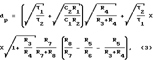 В свою очередь затухание полюса зависит от отношения пятого 8 и восьмого 11 резисторов. Благодаря этому в предлагаемом полосовом ARC-фильтре возможна независимая неинерционная настройка частоты полюса p , а затем затухания полюса dp, причем только за счет увеличения сопротивлений резисторов R3 и R4, R5 и R6 соответственно, что особенно важно для микроэлектронного гибридно-пленочного исполнения, где подгонка резисторов осуществляется только путем увеличения их номинала.