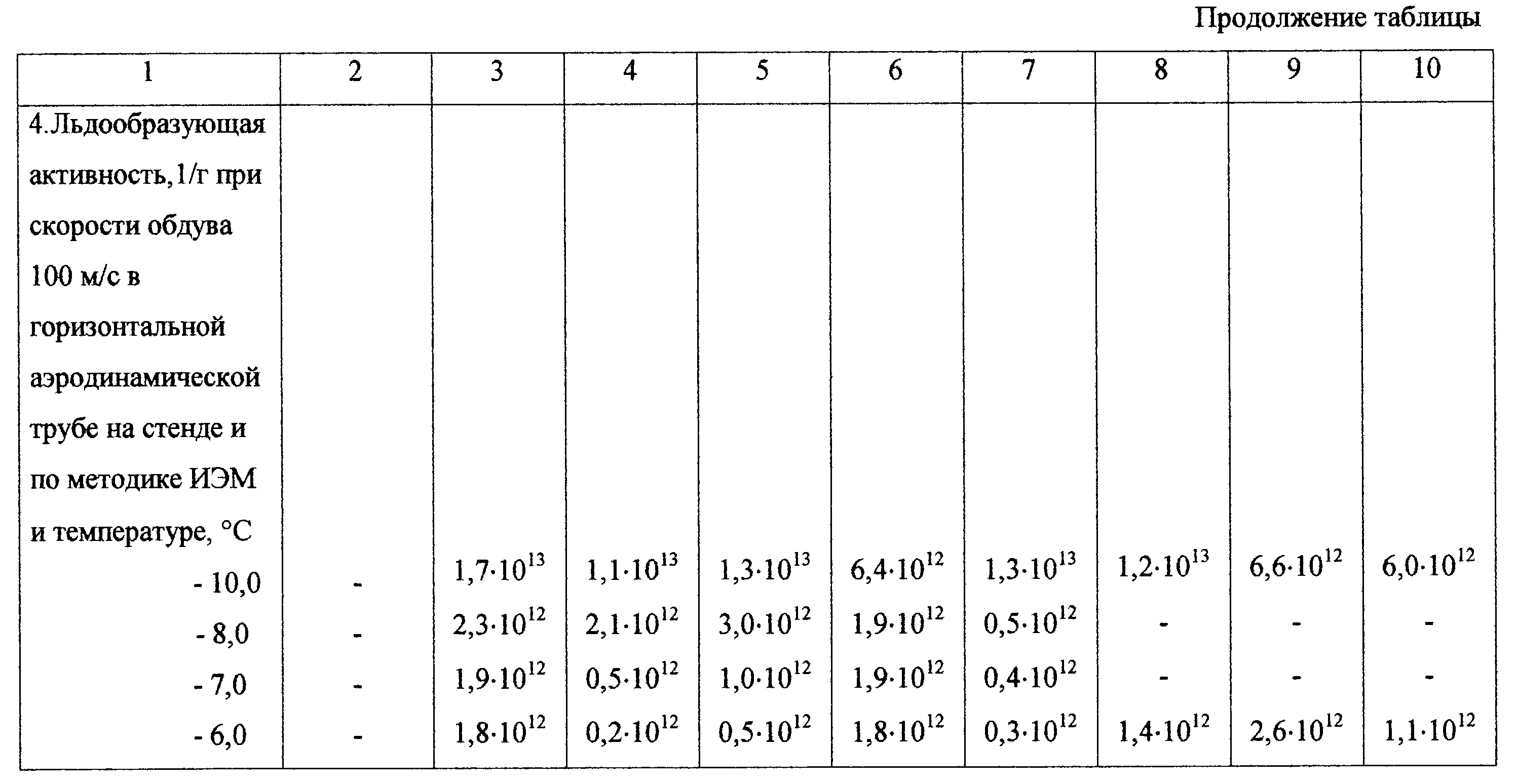 – льдообразующая активность при скорости обдува 100 м/с в горизонтальной аэродинамической трубе на стенде и по методике ИЭМ.