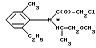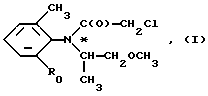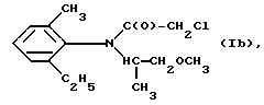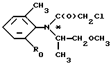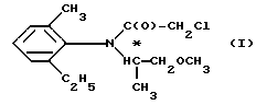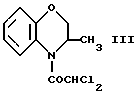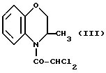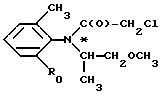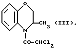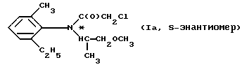 (57) Реферат: Описывается гербицидный препарат для селективного контроля за сорняками в посевах культурных растений, содержащий действующее начало наряду с инертными носителями и добавками, отличающийся тем, что в качестве действующего начала содержит гербицидно эффективное количество RS, 1’S(-)N-(1′-метил-2′-метоксиэтил)-N-хлорацетил-2-этил-6-метиланилина формулы (I), где R – этил, и противогербицидно эффективное количество соединения формулы (III). Описывается также способ селективной борьбы с сорняками и травами. Технический результат – получение гербицидного препарата, которым можно пользоваться без повреждения полезного растения, например кукурузы. 2 с. и 2 з.п. ф-лы, 5 табл.