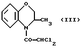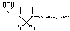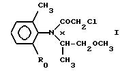 Изобретение относится к гербицидному препарату избирательного действия для борьбы с травами и сорняками при возделывании культурных растений, в частности при возделывании кукурузы, содержащему гербицид и антагонистическое средство (антидот), и предохраняющему полезные растения, а не сорняки от фитотоксического действия гербицида, а также к применению этого препарата или комбинации гербицид/антидот для борьбы с сорняками в посевах полезных культур. При использовании гербицидов в значительной степени могут повреждаться также культурные растения, что бывает обусловлено, например, дозировкой того или иного гербицида и типом его применения, видом культурных растений, особенностями почвы и климатическими условиями такими, как продолжительность светового дня, температура и количество выпадаемых осадков. Для решения этой и других аналогичных проблем уже предлагались различные вещества для использования их в качестве антидотов, которые способны нейтрализовать вредное воздействие гербицида на культурное растение, т.е. защитить его от этого воздействия и в то же время практически не снизить гербицидный эффект по отношению к сорнякам, против которых оно направлено. При этом было обнаружено, что предложенные до настоящего времени антидоты как по отношению к культурным растениям, так и по отношению к гербициду и частично в зависимости от типа применения во многих случаях по своему действию узко специфичны, иными словами, определенный антидот пригоден лишь для одного определенного культурного растения и для соответствующего гербицида, относящегося к определенному классу веществ. Было обнаружено, что некоторые хлор- и дихлорацетамиды могут эффективно использоваться для защиты культурных растений от фитотоксического действия соединения RS,1’S(-)N-(1′-метил-2′- метоксиэтил)-N-хлорацетил-2-этил-6-метиланилин формулы I![]() где R0 – метил или этил. Селективно-гербицидное средство, содержащее метолахлор в виде рацемической смеси изомеров, а также антидот беноксакор, известно и коммерчески доступно под торговым названием DUAL S. Это средство описано, например, в THE PESTICIDE MANUAL, 9-е издание, стр. 61, а также раскрыто в EP-A-0149974. Антидот беноксакор представляет собой компонент средства по настоящему изобретению и обозначен в нем как соединение формулы III. Известно, что оптически активный S-энантиомер соединения формулы I настоящего изобретения обладает более высокой гербицидной активностью, чем рацемическая смесь. Поэтому от гербицидного средства, содержащего в качестве действующих начал вместо рацемата оптически активный S-энантиомер формулы I, а также антидот формулы III, при одинаковой норме расхода следует ожидать более сильного гербицидного действия. Однако средство по изобретению обладает свойствами, которые далеко выходят за пределы того, что специалист мог бы ожидать от этой комбинации гербицида с антидотом. Задача настоящего изобретения состоит в том, чтобы получить селективное гербицидное средство, которое позволяет бороться с сорняками в посевах сельскохозяйственных растений, в частности при выращивании кукурузы, без повреждения полезного растения. Эта задача решается путем создания средства, которое наряду с гербицидно-действующим, оптически активным соединением формулы I, содержит специальный антидот формулы III. Таким о