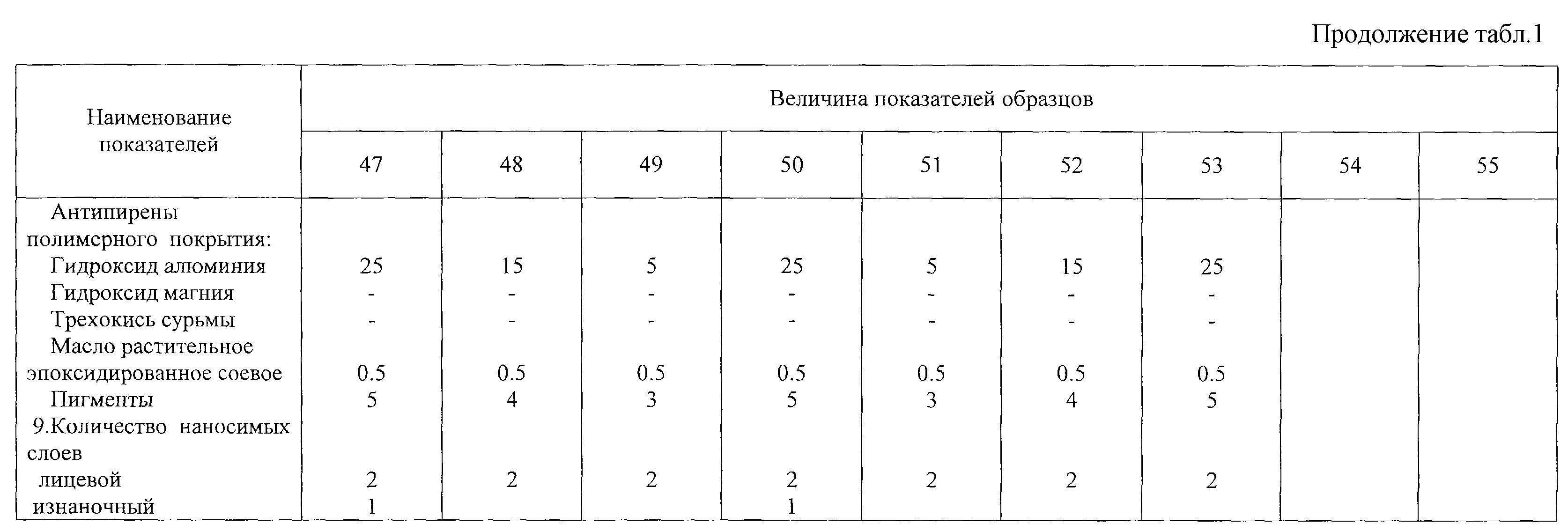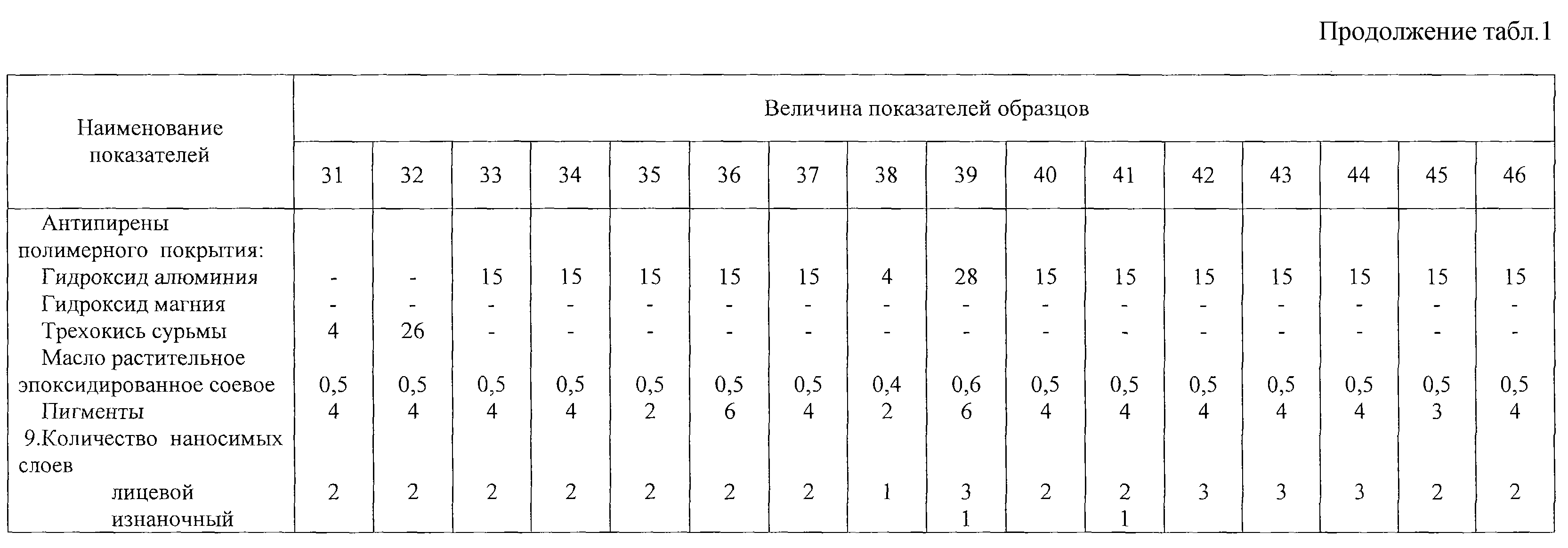 Дополнительное введение в состав полимерного покрытия антипиренов – замедлителей горения – соединений алюминия, магния, сурьмы способствует образованию графитоподобных веществ или негорючей углеродной пены, препятствующих распространению пламени; а также возникновению в поверхностных слоях материала активных молекул, ингибирующих горение материала в предпламенной зоне.