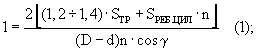 Площадь проходного сечения внешних винтовых ребер Sпрох.цил определяется соотношением