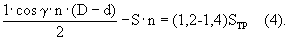 n – число заходов внешних винтовых ребер (принято = 4).