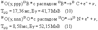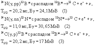-активными и в процессе распада испускают электроны и позитроны с максимальной энергией ~13 МэВ и ~17 МэВ, которые, двигаясь в веществе, в свою очередь индуцируют гамма-кванты. Эти гамма-кванты, так же как и аннигиляционные с энергией 511 кэВ, вместе с электронами и позитронами составляют вторичные продукты распада и могут быть зарегистрированы детектором. Следовательно, если облучить обследуемый объект импульсом гамма излучения с энергией гамма-квантов выше пороговых значений Е