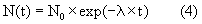 где N(t) – число нераспавшихся ядер в момент времени t; N0 – исходное число образованных ядер,