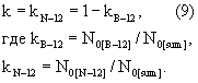 Количественно результаты анализа временного спектра продуктов распада изотопов 12В и 12N могут быть представлены в виде значений параметра k, определенного как