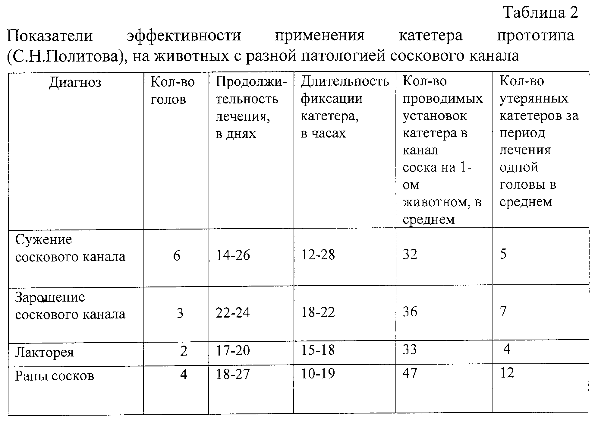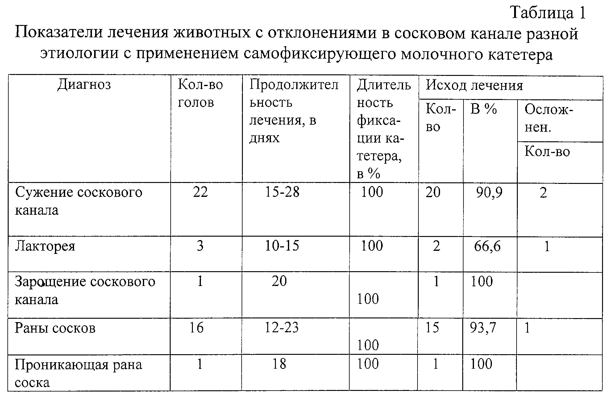 (57) Реферат: Применяется для лечения болезней сосков вымени различной патологии в области ветеринарии. Применяемая в качестве фиксатора катетера полихлорвиниловая трубочка с продолговатыми разрезами в средней части позволяет катетеру прочно фиксироваться в канале соска на любой срок, не раздражая ткани, так как материал является индифферентным к тканям организма и в силу эластичности трубки, сняв контрагайку можно легко извлечь катетер из канала соска. Изменение конструкции катетера позволило повысить фиксационную способность, благодаря чему достигается снижение трудоемкости, повышение эффективности лечения и сокращение расходов. Изобретение также может быть использовано при лечении маститов и инфекционных заболеваний, сопровождающихся поражением вымени. 3 табл., 9 ил. Изобретение относится к ветеринарии, в частности к инструментам, используемым в акушерстве при лечении болезней сосков вымени различной патологии (лакторея, сужение соскового канала, заращение соскового канала, послеоперационное лечение свищей молочной цистерны, при лечении ран сосков и т.д.). Известен самофиксирующий молочный катетер по Е.Н. Понамаренко [3]. Его легко изготовить из полиэтиленовой трубки соответствующего диаметра (до 4 мм). Полукруглую форму фиксатору придают путем поочередного подогрева на спиртовке с последующим охлаждением в воде каждой из 4 лопастей, образующихся после разреза стенки трубки вблизи одного из концов. Направляющий конец запаивают и заостряют. На расстоянии 2 см от фиксатора свободный конец трубки подогревают и разбортовывают. Стерилизуют катетер холодным способом. После охлаждения фиксатор приобретает полукруглую форму с диаметром, превышающим диаметр соскового канала в 2-3 раза, что препятствует введению катетера в сосковый канал. Лечение тугодойкости (сужение соскового канала) по способу, предложенному В.С. Кондратьевым, А.И. Киселевым и И.Г. Песковым [1], предполагает операционное вмешательство с введением в сосковый канал полихлорвиниловой трубочки диаметром 5 мм. Лейкопластырь или шелковая нить, с помощью которых авторы предлагают закрепить трубку в соске, в практических условиях не обеспечивают надежную фиксацию на длительное время. При лакторее (недержание молока) предлагают [2] вводить в канал соска молочный катетер с последующим наложением подкожного кисетного шва вокруг отверстия соскового канала для фиксации катетера. К недостаткам этого метода следует отнести: трудности, связанные с наложением шва; механическое и болевое раздражения, вызываемые лигатурой; нагноения; тугодойкость, вызванная излишним стягиванием шва. Предупреждение потери молока надеванием резинового кольца на нижнюю треть соска вызывает нарушения кровообращения в соске и некроз его стенки. Способы насильственного расширения соскового канала при помощи бужей, специального расширителя соскового канала и палочек ламинария малоэффективны [1]. Наиболее близким по техническому решению к предлагаемому изобретению является предложенный С.Н. Политовым [4] укороченный молочный катетер с утолщением на конце стержня, предназначенного для его фиксации в соске. Отверстие катетера снаружи закрывается винтиком. Утолщенная часть стержня является слабым фиксатором и при незначительном увеличении давления в цистернах вымени (при наполн