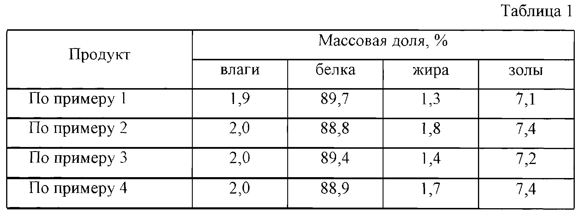 Выход конечного продукта составляет 16,8-20,4% от массы исходного сырья, что составляет от 81 до 86% конверсии белка. Полученный продукт представляет собой порошок темно-желтого или кремового цвета.