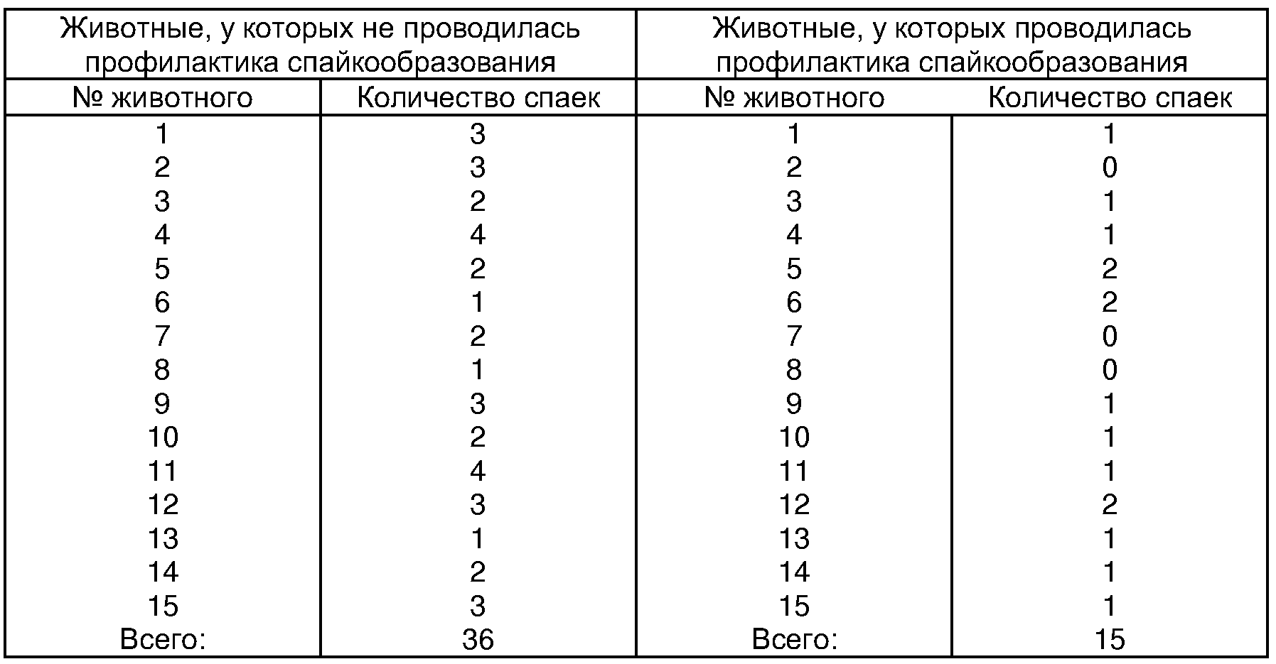 Таким образом, после применения заявляемого средства для профилактики спайкообразования в проведенном эксперименте количество образовавшихся спаек уменьшилось в 2,4 раза.