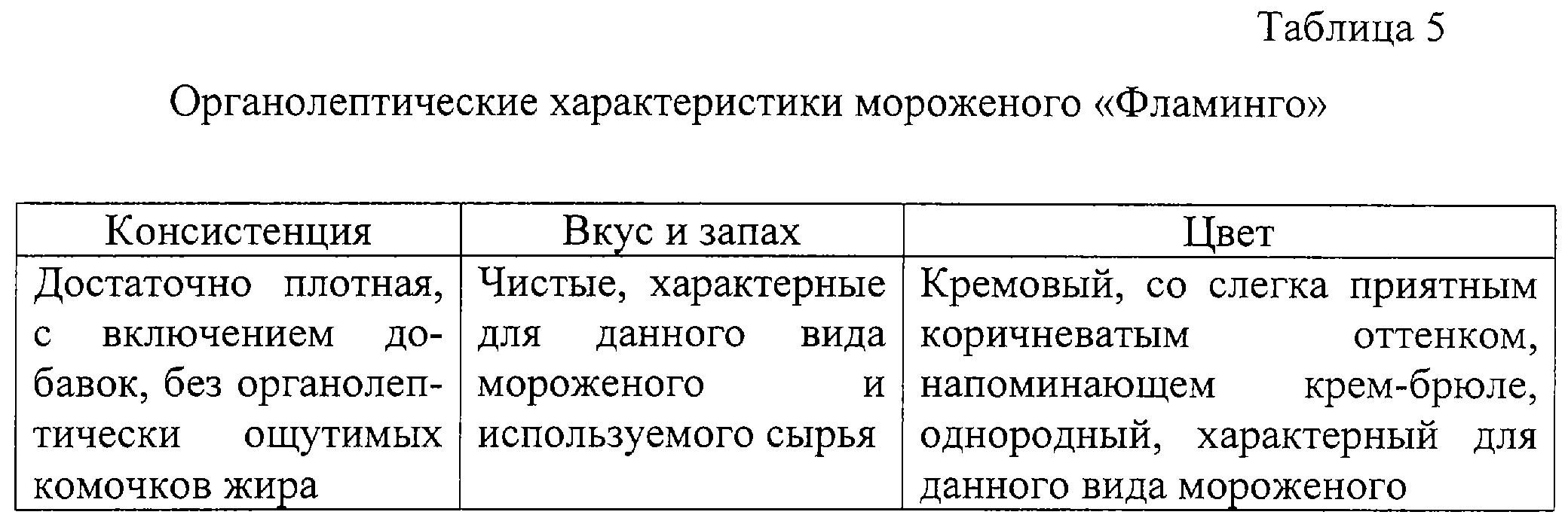На основании проведенных опытных выработок мороженого “Фламинго” согласно рецептурам, указанным в примерах 1-4, установлено, что продукт, выработанный по примеру 1, отвечает предъявленным требованиям. Дальнейшие исследования проводились с готовой продукцией, выработанной только согласно этой рецептуре.