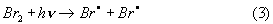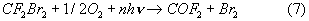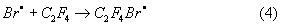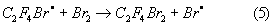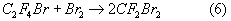 После добавления паров брома в облученную смесь ее направляют в фотохимический реактор, где под действием света происходит диссоциация молекул брома и протекает радикально-цепная реакция бромирования ТФЭ:
