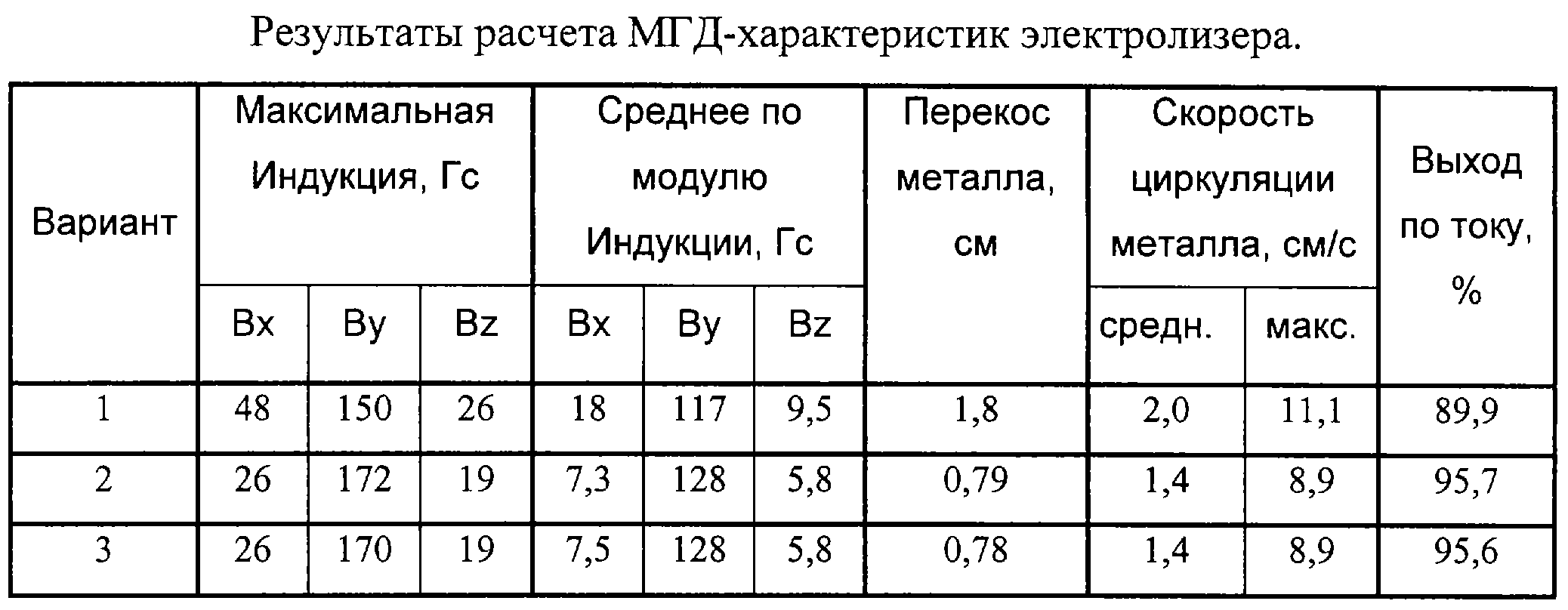 Снижение средних и максимальных значений Вх и Bz в варианте 2 приводит к уменьшению перекоса металла и увеличению расчетного выхода по току на 4-6%.