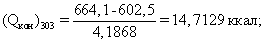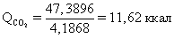 Qак=(Qкак)353-Qo=216,1555-157,5996=58,5559 ккал;