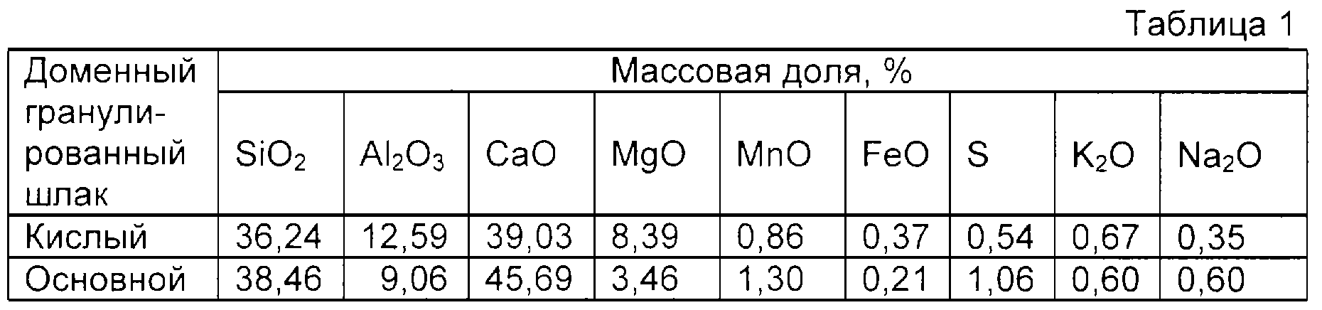 В табл.1 представлен химический состав кислых и основных доменных гранулированных шлаков, используемых для очистки ЖРО.