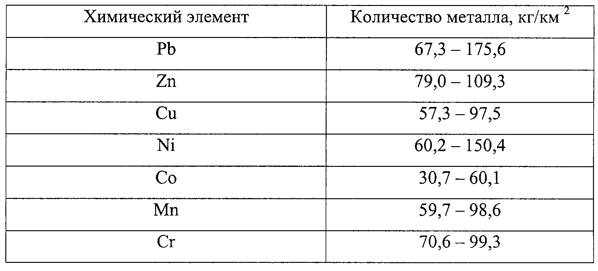 (57) Реферат: Изобретение относится к области биологической очистки почв, загрязненных тяжелыми металлами. Фиторемедиационный способ включает засев почвы семенами растений из семейств сложноцветных, бобовых и злаковых в соотношении 1:1:1 в количестве 1,50-22,90 млн.шт./га с последующим многократным скашиванием их на стадии вегетационного периода, высушиванием и удалением с поверхности почв. Фиторемедиационный способ очистки почв является экологически чистым и позволяет существенно снизить содержание тяжелых металлов в загрязненных почвах. 1 табл. Изобретение относится к области биологической очистки почв, загрязненных тяжелыми металлами. Технический результат заключается в уменьшении содержания тяжелых металлов в почвах, загрязненных ими. Сущность изобретения заключается в том, что в фиторемедиационном способе очистки почв от тяжелых металлов почву засевают семенами растений из семейств сложноцветных, бобовых и злаковых в соотношении 1:1:1 в количестве 1,50-22,90 млн.шт./га с последующим многократным скашиванием их на стадии вегетационного периода, высушиванием и удалением с поверхности почв. Предлагаемый фиторемедиационный способ очистки почв от тяжелых металлов основан на различной аккумуляционной способности надземных частей растений к этим металлам. Высевают семяна растений из семейства сложноцветных: тысячелистника обыкновенного Achillea millefolium L, одуванчика лекарственного Taraxacum officinale Wigg., полыни горькой Artemisia absihthium L. и бодяка полевого Cirsium arvense (L.) Scop., из семейства бобовых: клевера лугового Trifolium pratense L. и семейства злаковых: мятлика лугового Poa pratensis L. Способ осуществляют следующим образом. На почвах, загрязненных тяжелыми металлами, высевают семена растений из семейств сложноцветных, бобовых и злаковых в соотношении 1:1:1 в количестве 1,50-22,90 млн.шт. на 1 га (для обеспечения более эффективной очистки), затем растения скашивают в период бурного роста (на стадии вегетации), высушивают и удаляют с поверхности почвы. Эту процедуру повторяют периодически по мере отрастания надземных частей растений. Утилизировать надземные части растений можно двумя способами: помещать в компостные ямы (в результате перегноя можно получать органическое удобрение, богатое микроэлементами) либо сжигать и получать минеральное удобрение, богатое микроэлементами. Полученные органические и минеральные удобрения могут быть успешно использованы на почвах, испытывающих дефицит в микроэлементах. За весь вегетационный период надземные части этих растений способны аккумулировать значительное количество тяжелых металлов. С учетом того что в надземных частях травянистых растений содержится в среднем от 77 до 79% воды, а урожай зеленой массы колеблется от 600 до 1000 ц/га, можно рассчитать количество тяжелых металлов, аккумулируемых надземной частью растений с 1 км2 почвы при выращивании данных видов растений на различных типах почв и в различных условиях (таблица). Многократное скашивание надземной части растений проводят в период их цветения. Изученные растения семейства сложноцветных, бобовых и злаковых обладают высокой аккумуляционной способностью на слабокислых, нейтральных и слабощелочных почвах. На пойменных луговых почвах, газонах и скверах для очистки их от тяжелых металлов лучше засевать многолетние травянистые растения клевер луговой и м