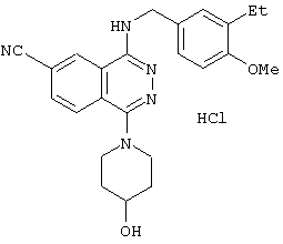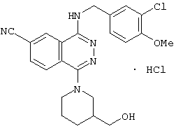 1) 4-(3-хлор-4-метоксибензил)амино-6-циано-1-[(3R)-3-гидроксиметилпиперидино]фталазин;