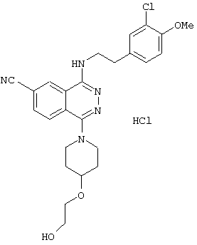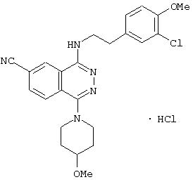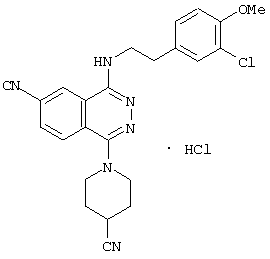 12) 4-(3-хлор-4-метоксифенетил)амино-6-циано-1-(4-цианопиперидино)фталазин;